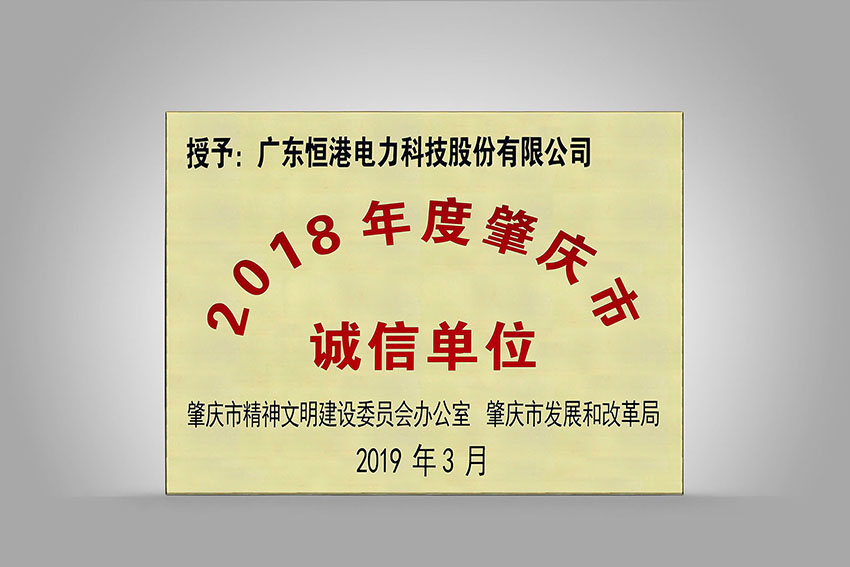 2018年度肇慶市誠信單位牌扁