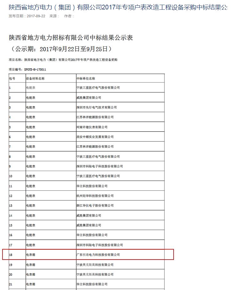 2017年專項(xiàng)戶表改造工程設(shè)備采購項(xiàng)目中標(biāo)結(jié)果公示表