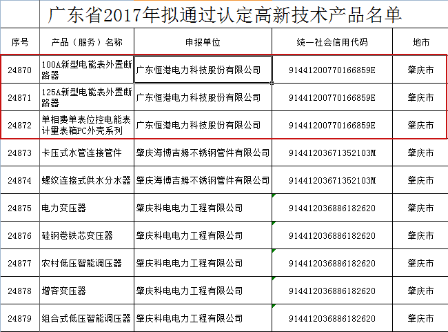 關(guān)于公示廣東省2017年擬通過認(rèn)定高新技術(shù)產(chǎn)品