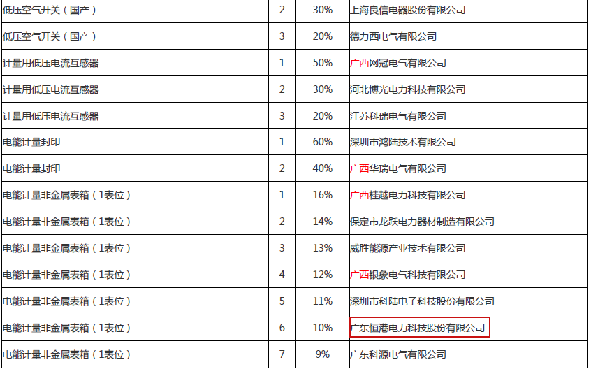 熱烈慶祝我司在廣西電網公司2018年省級物資第四批框架招標中中標3個標包