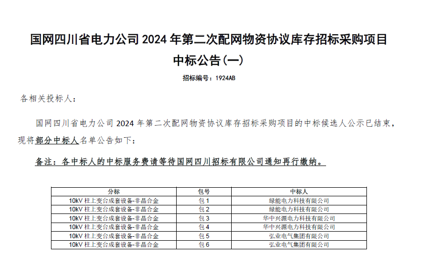 【中標喜訊】熱烈祝賀我司中標國網(wǎng)四川省電力公司2024年第二次配網(wǎng)物資協(xié)議庫存招標采購項目