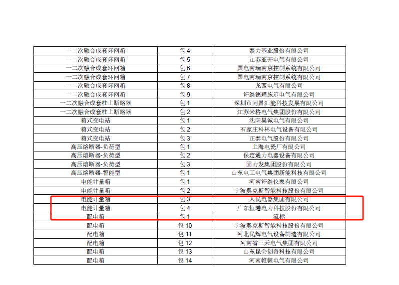 2024年11月29日 國網(wǎng)四川省電力公司傳來捷報,廣東恒港電力科技股份有限公司中標“國網(wǎng)四川省電力公司 2024 年第二次配網(wǎng)物資協(xié)議庫存招標采購項目”項目電能計量箱分標。恒港公司一直持著“客戶至上、質量第一”的經(jīng)營理念,為客戶提供更加優(yōu)質的產品和服務。讓我們繼續(xù)攜手共進,再奪佳績!!!